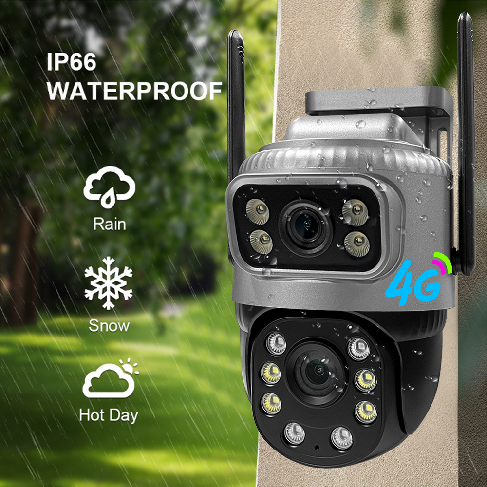 Camera de supraveghere GizMondo V380 New Model Bullet + PTZ Dual Lens 6MP, cu design negru-argintiu si carcasa rezistenta IP66, conceputa pentru monitorizarea completa a spatiilor interioare si exterioare. Combina o camera fixa (Bullet) si o camera mobila PTZ intr-un singur dispozitiv, oferind imagine de inalta claritate, vedere color pe timp de noapte si control complet din aplicatie.