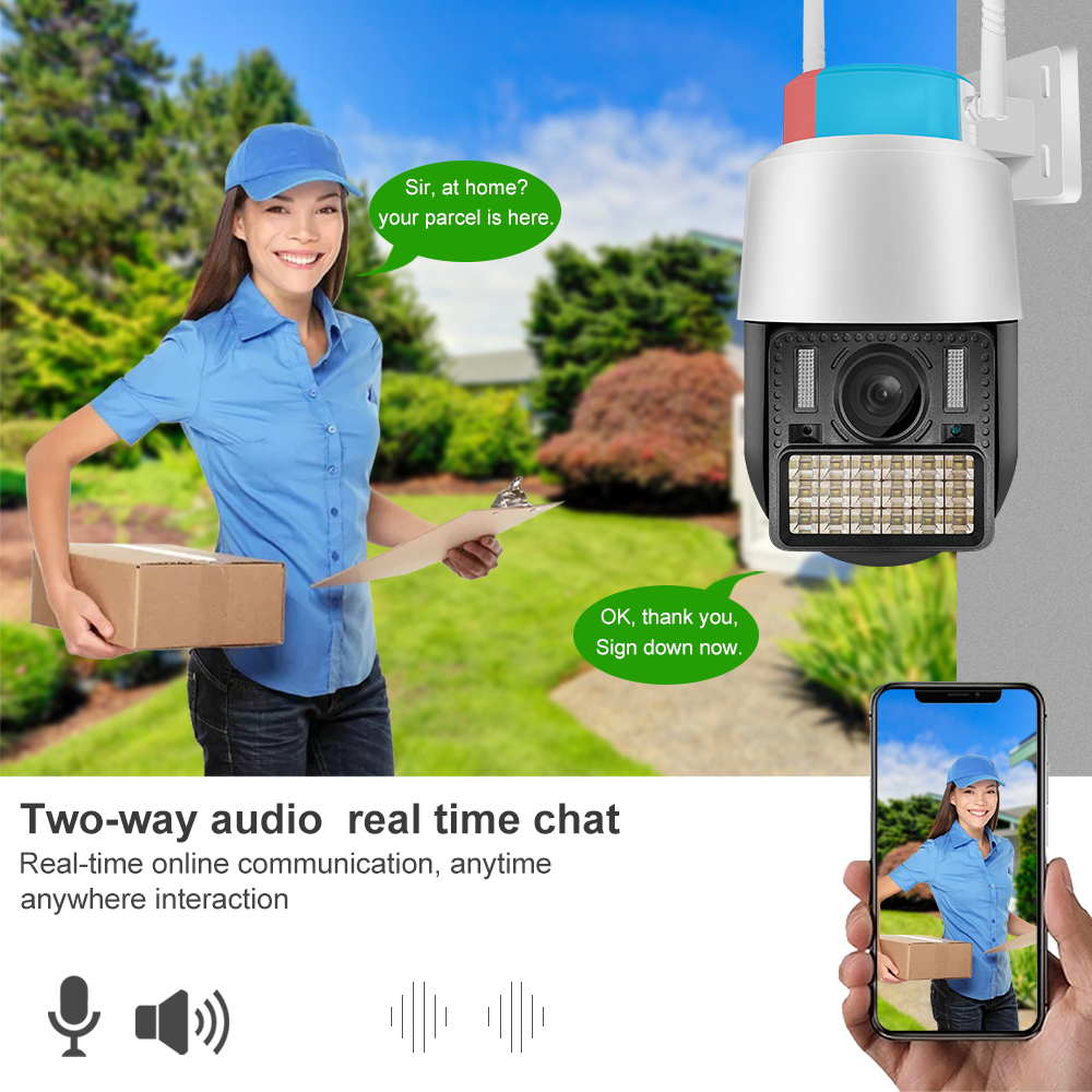 Functia audio bidirectionala va permite sa ascultati si sa vorbiti prin camera. Vorbiti cu curierul, jucati-va cu animalele de companie sau chiar faceti un avertisment sonor pentru a speria potentialii intrusi etc.