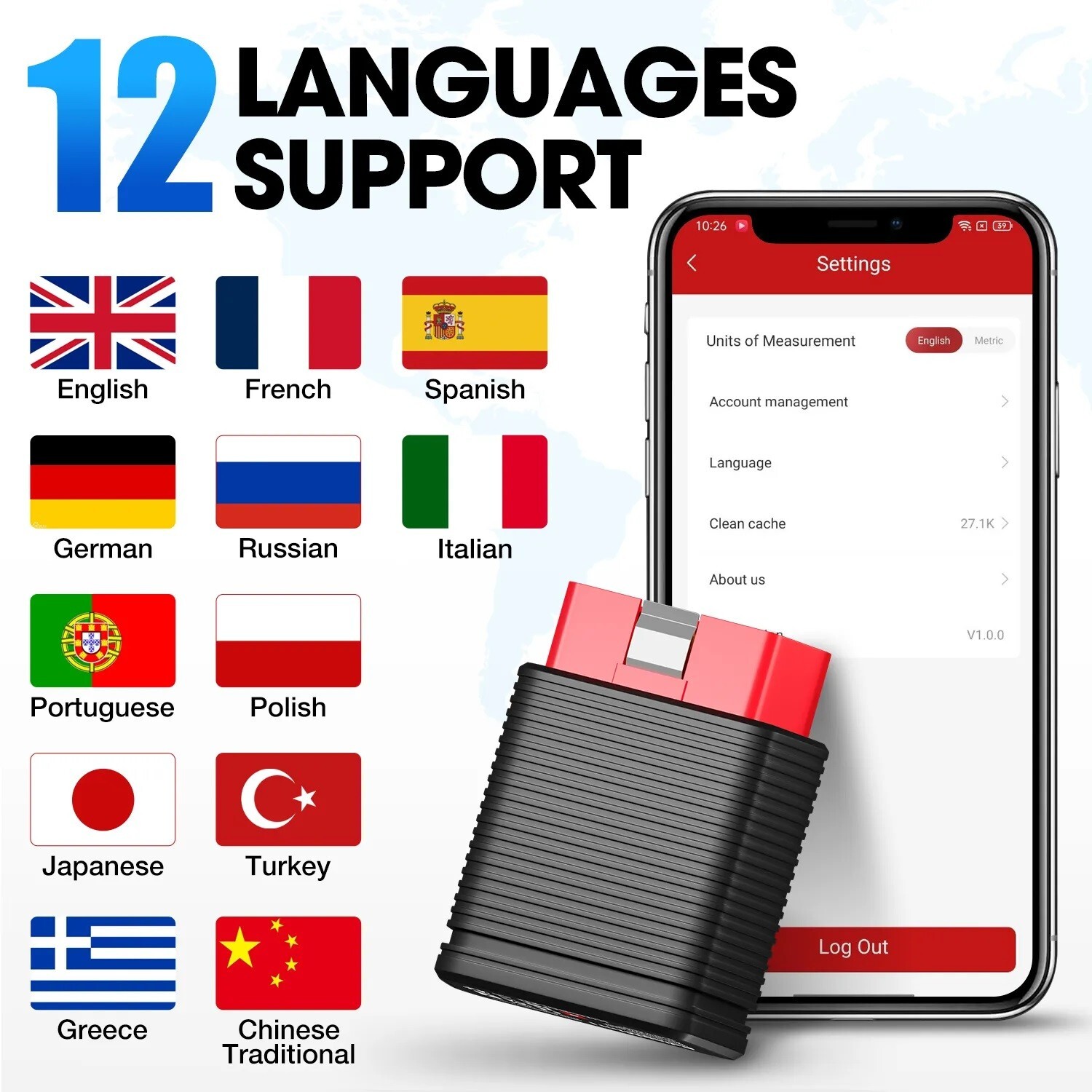 R1: Compatibil cu toate vehiculele care accepta protocolul OBD II / EOBD din 2005 , care poate efectua servicii de diagnostic pentru mai mult de 128 marci de vehicule.