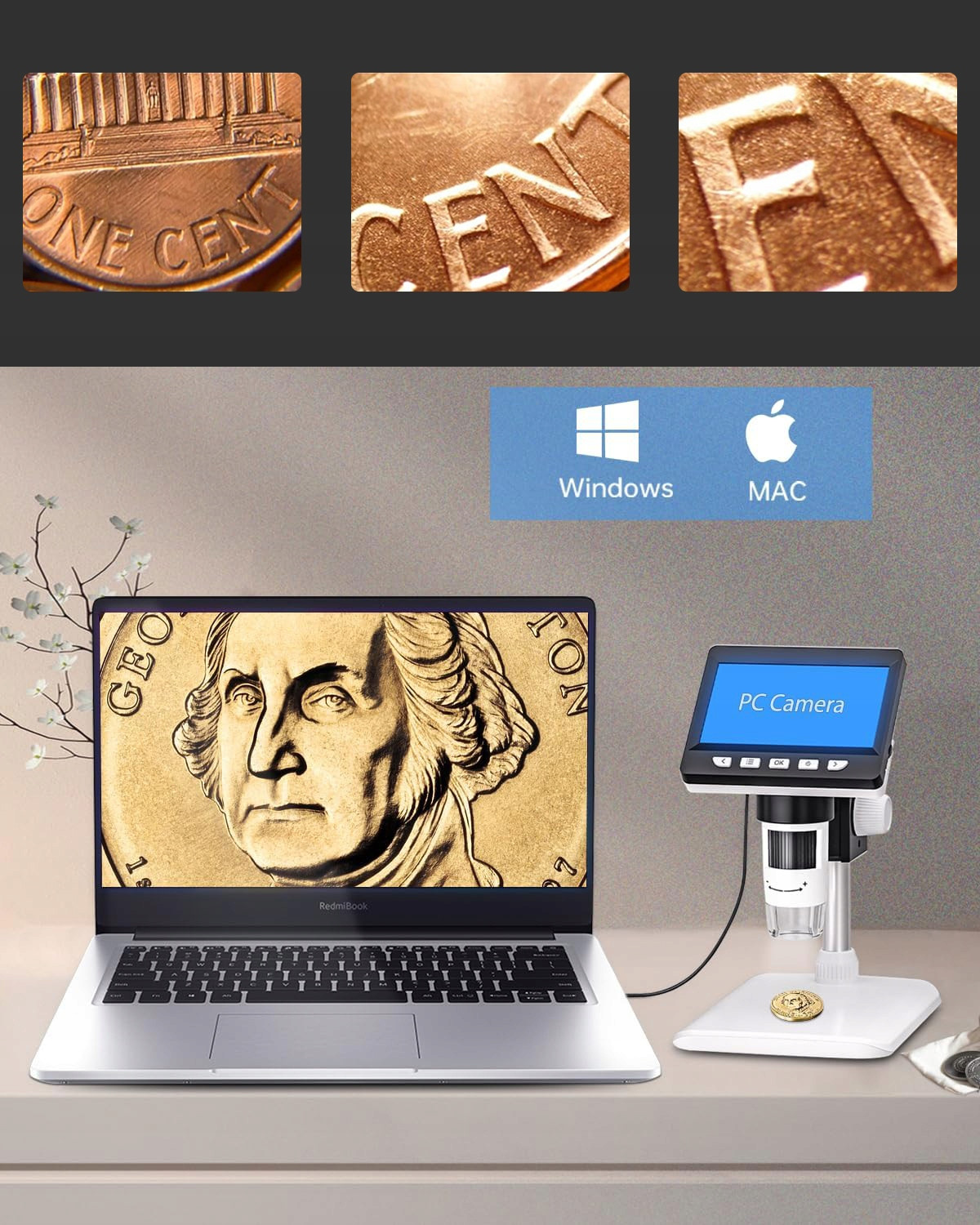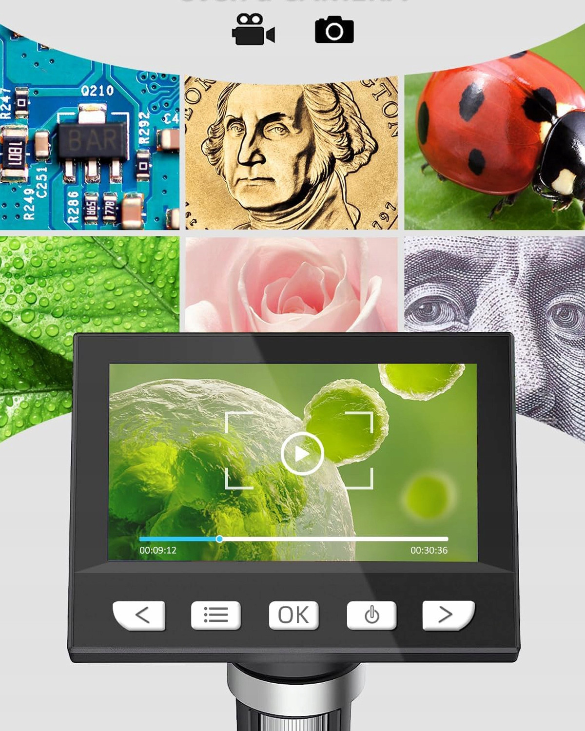 Microscop Digital Profesional Gizmondo 307 cu Ecran LCD de 4.3″, Zoom 50X–1000X, Camera HD 2MP, Iluminare LED Reglabila, Baterie 2000mAh – Ideal pentru Inspectii Electronice, Analize Biologice si Educatie STEM