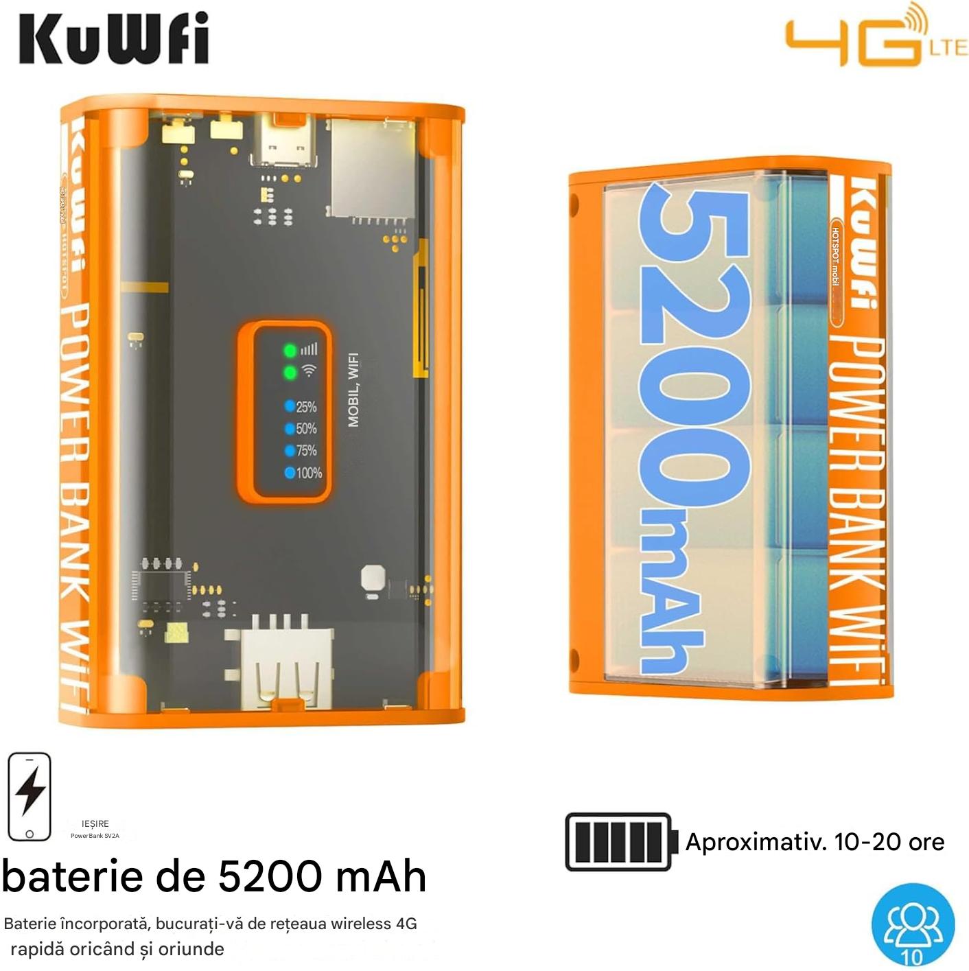 Acest router portabil 4G LTE este solutia ideala pentru cei care au nevoie de internet de mare viteza oriunde s-ar afla. Cu o baterie integrata de 5200mAh, functie de power bank si suport pentru pana la 10 dispozitive conectate simultan, acest dispozitiv ofera conectivitate stabila si flexibila in orice situatie.
