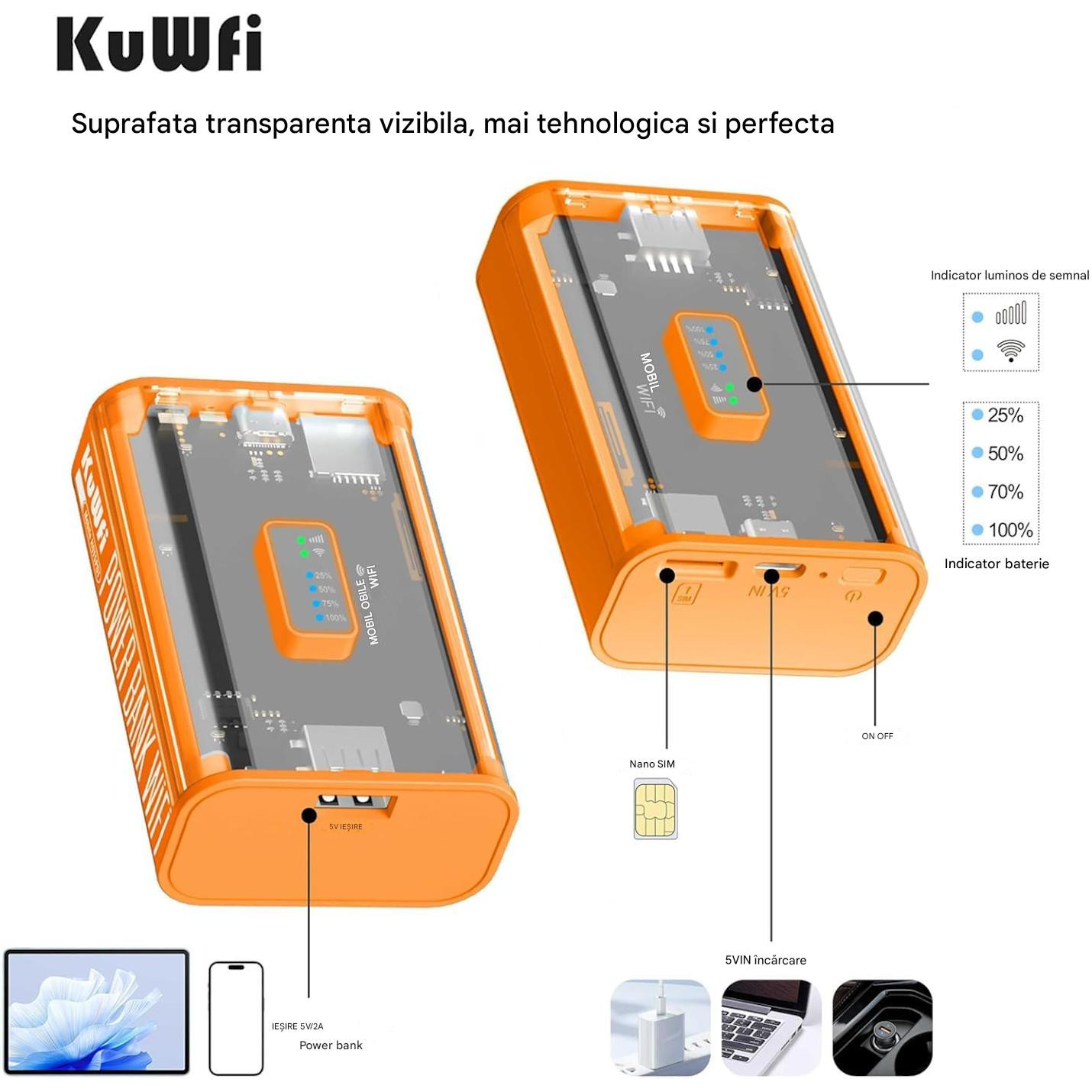 - Design compact si usor de transportat, perfect pentru uz mobil, excursii, birou, masina sau zone fara internet fix.