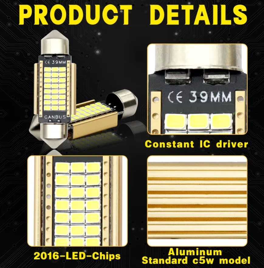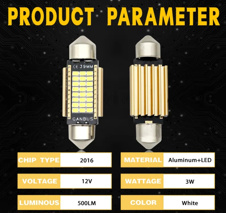 Bec de interior, lampi numar, portbagaj tip LED Canbus c5w 39mm Sofit  12v  3W, culoare alb  set 2 buc