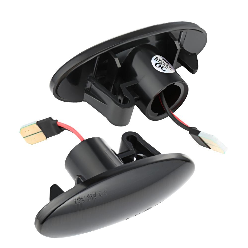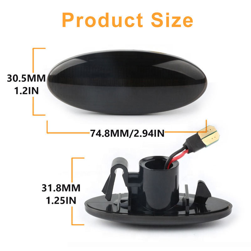 Setul include 2 semnalizari laterale tip side marker, una pentru stanga si una pentru dreapta. Au LED SMD integrat si efect dinamic de semnalizare, cu aprindere secventiala. Lentila fumurie ofera un aspect modern. Sistemul CANBUS este integrat, astfel incat nu apar erori in bord si nu apar palpaieli.