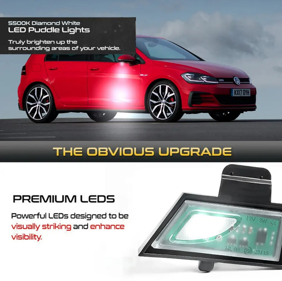 Imbunatateste aspectul si functionalitatea vehiculului tau Volkswagen cu acest set de 2 lampi LED sub-oglinda (puddle light), compatibile cu modelele: