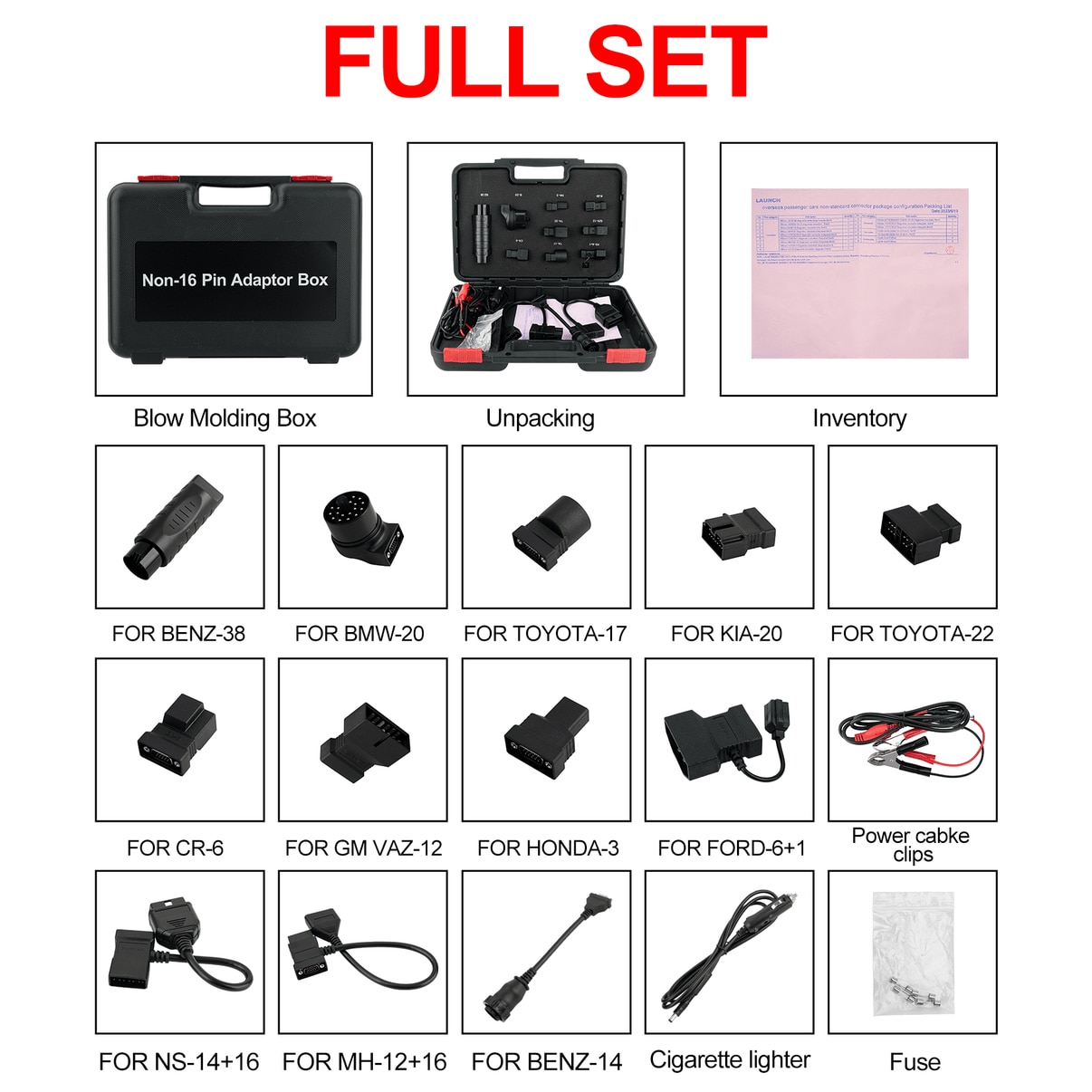 Set adaptoare diagnoză LAUNCH X431 Non OBD2, pentru Mercedes, BMW, Nissan, Ford, 14x20pini, cutie transport, negru