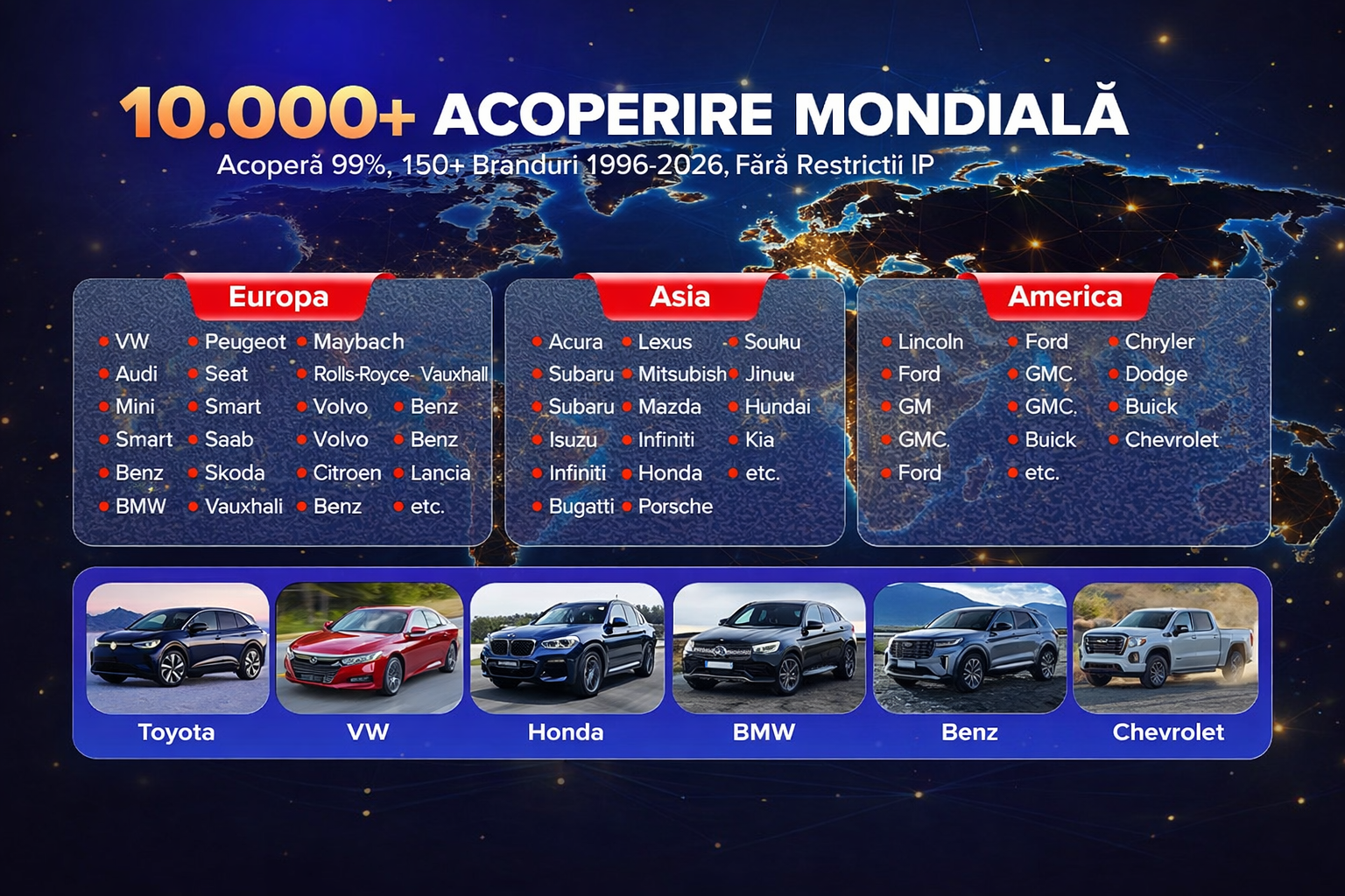 Acoperire larga, peste 10.000 de vehicule, modele din 1996 pana in prezent.