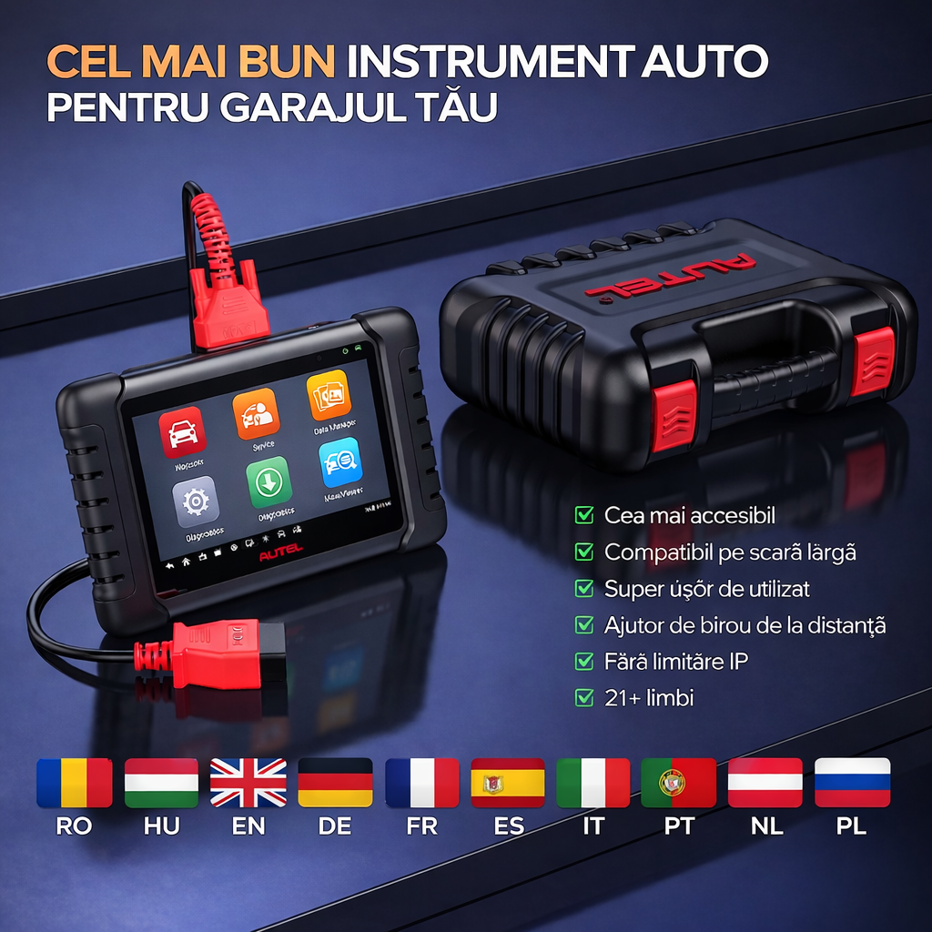 Autel MaxiCheck MX808S este un tester de diagnoza tip tableta, pentru masini multimarca. Il conectezi la mufa OBD2 si scanezi rapid toate modulele masinii. Lucrezi pe o interfata fluida, cu meniu in limba romana si maghiara, plus alte limbi disponibile din setari.