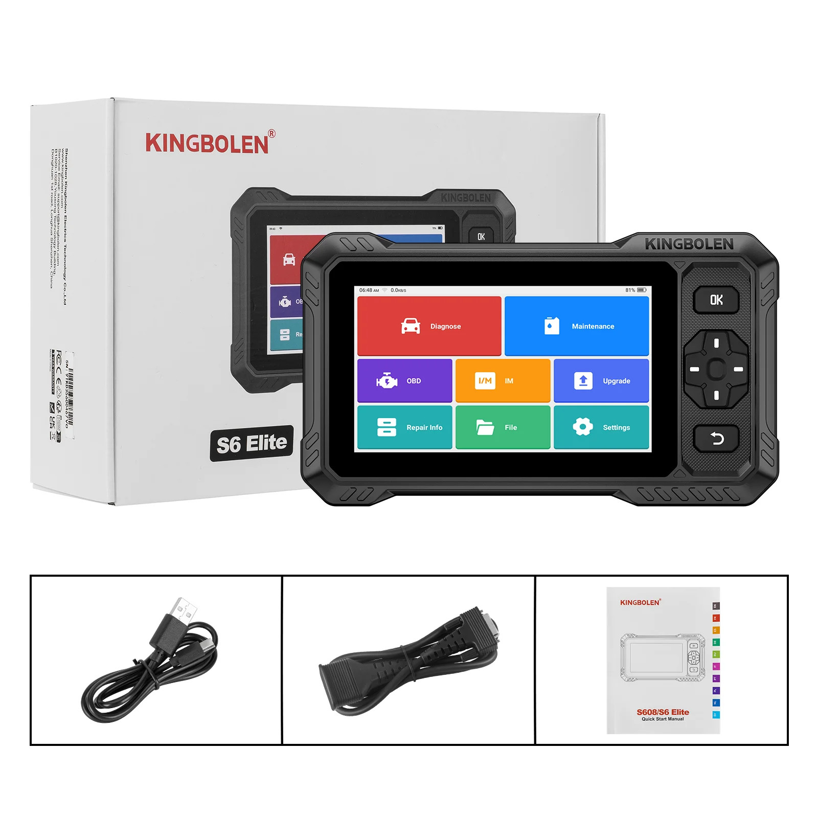 Tester diagnoză auto Kingbolen S6 Elite 2025, tableta Android, funcții service 15+, OBD2, 6.2 inch