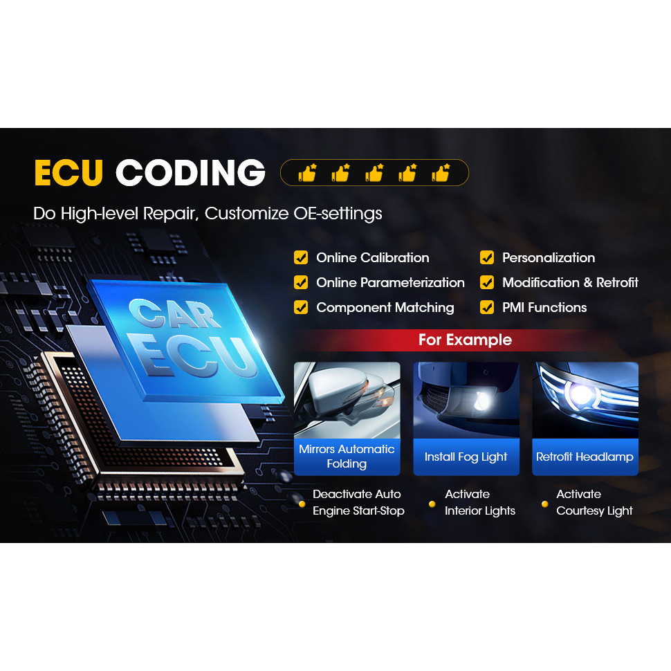 Primesti functii de tip Variant Coding si proceduri ghidate pentru grupul VAG, utile la adaptari si setari. Testerul include si functii de matching si initializari dupa inlocuirea unor module. Suportul exact depinde de marca si model.
