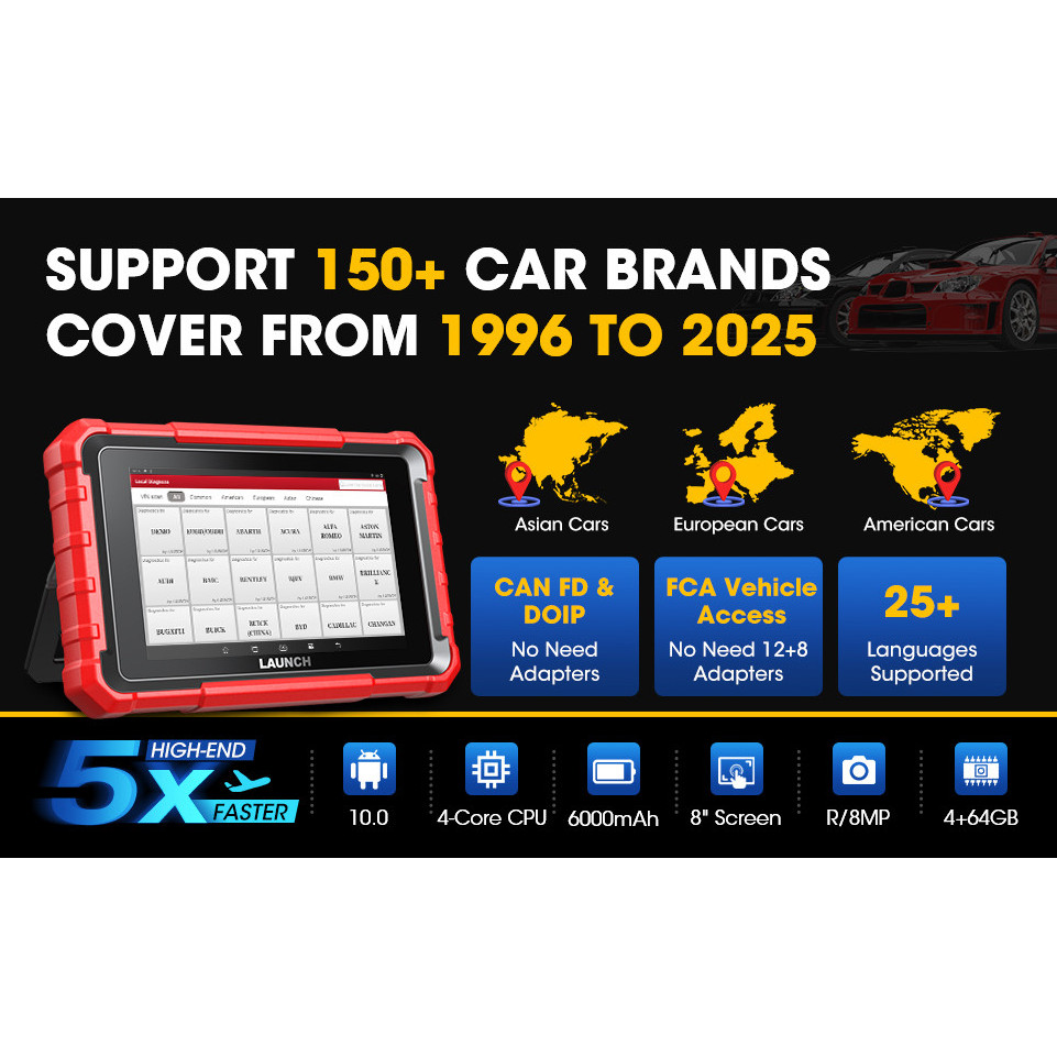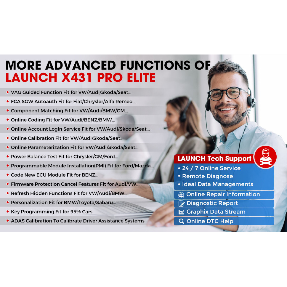 Prima pagină Testere de diagnoză auto Tester diagnoză auto LAUNCH X431 PRO ELITE, tabletă 8″, 4GB RAM, 64GB, negru/rosu